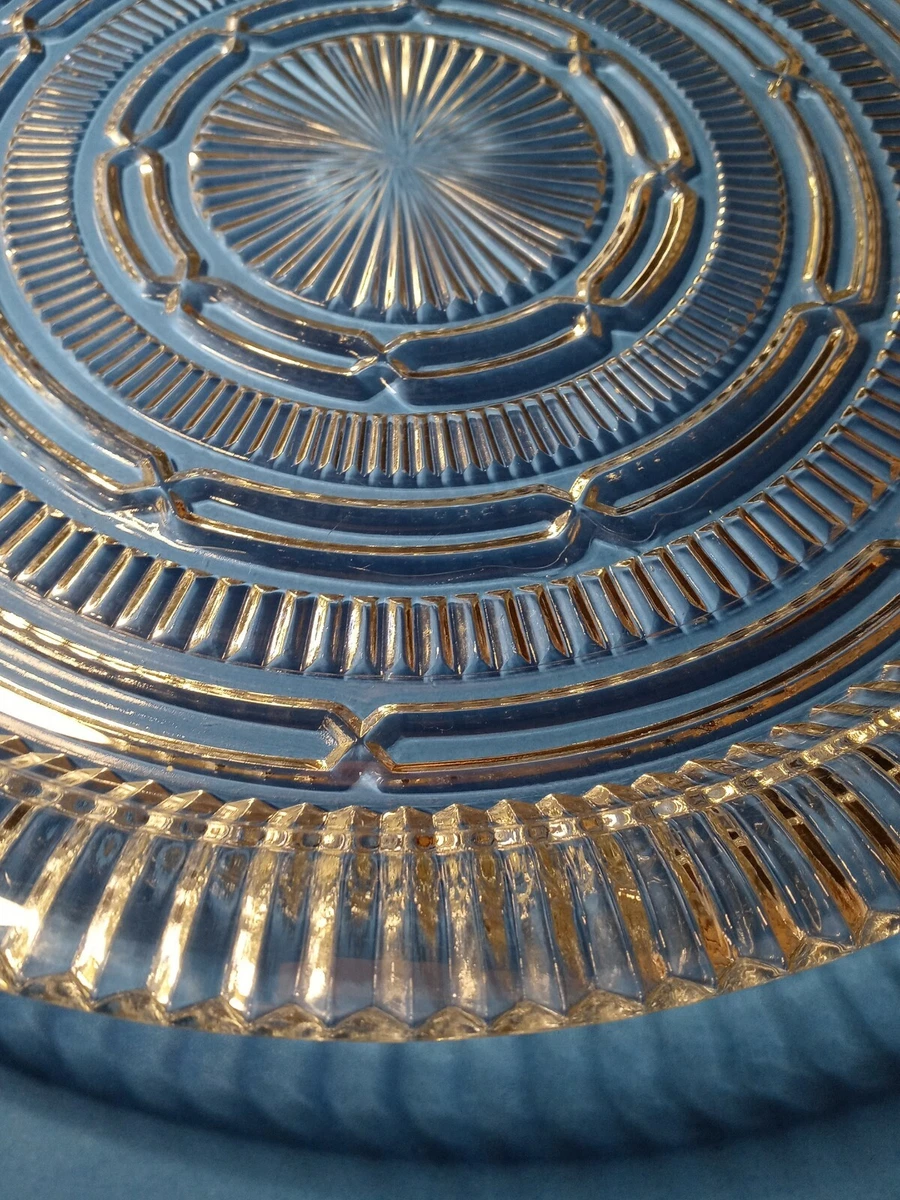 Vintage Heavy 14 Clear Glass Round Serving Platter Plate Sunburst Pattern Ebay